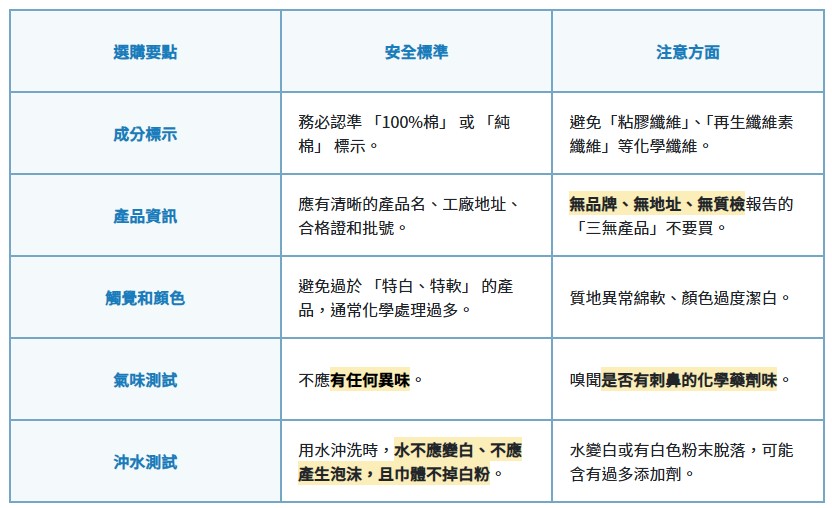 只有那些明確標註**「100%棉」**的「棉柔巾」,才沒有被檢出二硫化碳殘留。那些摸起來「特軟、特白」的廉價「綿柔巾」,往往就是化學藥劑過度處理的結果!