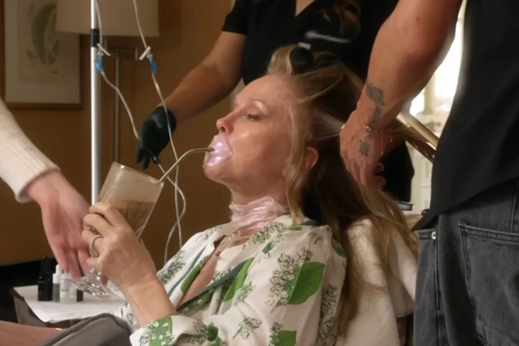 而近年佢最令人關注嘅,並唔係鑽石手袋,而係佢將 「健康逆齡」變成一種社交方式——直接喺私人派對入面引入 NAD+ IV 滴注療程,令養生由私密醫療,升級成名人級生活日常。